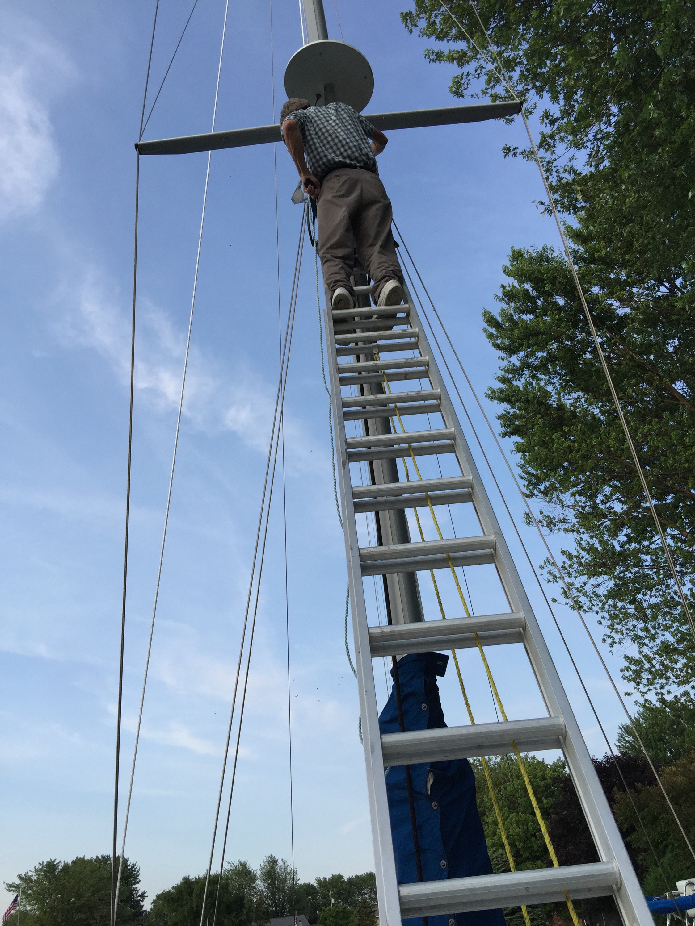 The two top photos are showing Bryce anxiously putting up the radar, and running up all the wires.