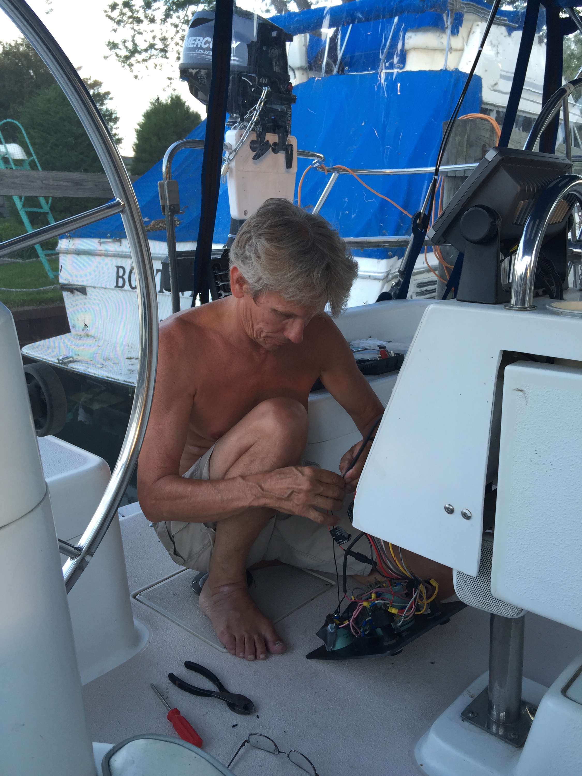 The third photo Bryce is running wires from hand radio to GPS that allows us to see the positions of freighters and other vessels through ASI.