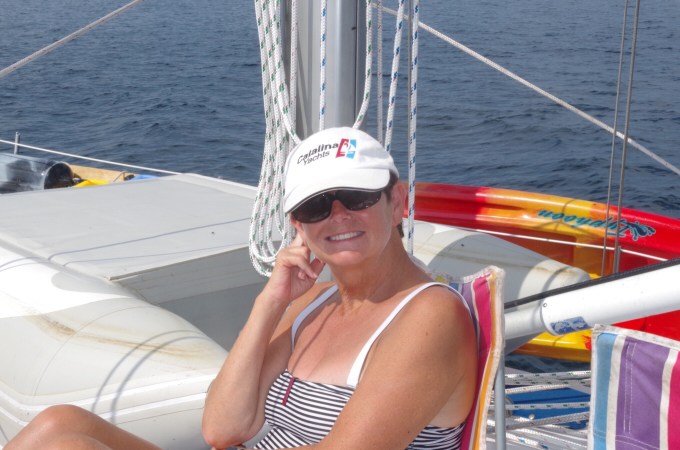 For those that don’t know.. Our boat is a 400 Catalina.. Thanks for the great boat Gerry Douglas.. Our boat designer who we talk to most every year at the Annapolis boat show.. Jane and her Calalina hat..