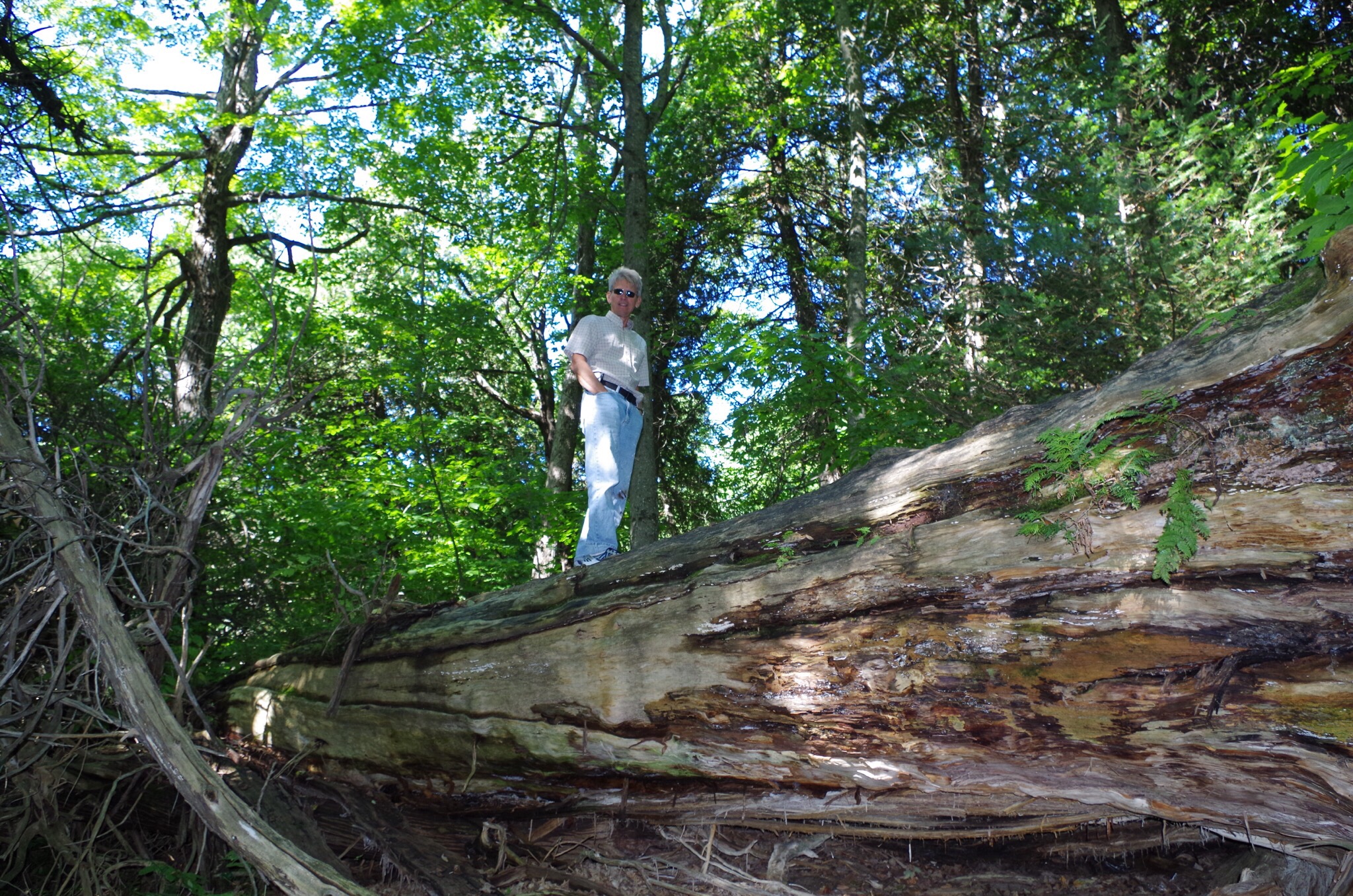 This is Bryce standing on a dead ceader tree that has fallen to its resting place.