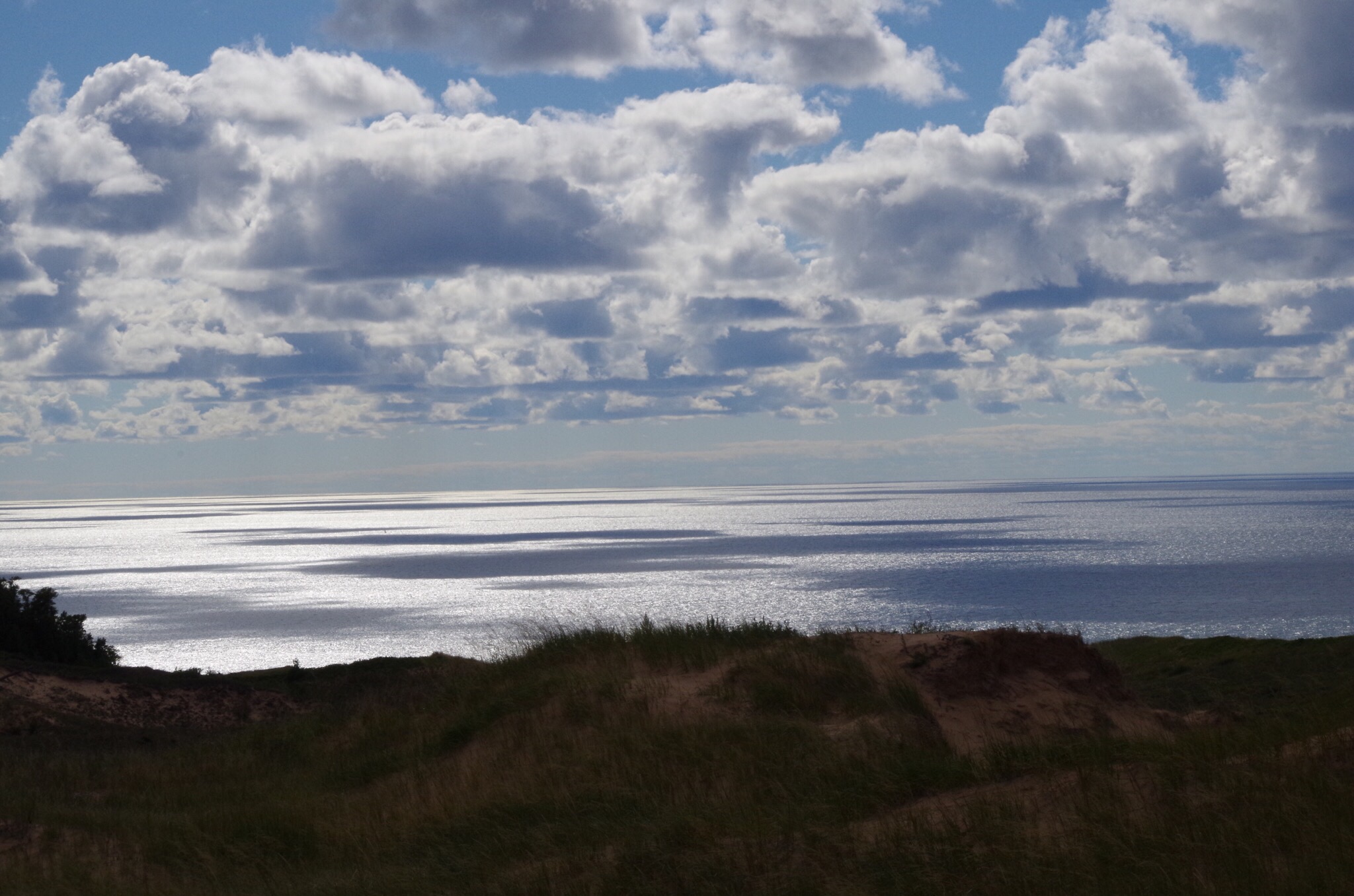 The view west was spectacular.. You could see the shadows of the clouds on the water.. This seems in contrast to the huge waves we slogged through coming over.