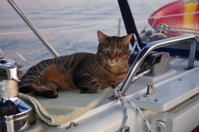 I miss you😘 George is an awesome cat sailor. So much has happen already I cannot wait to share it with you. Our mast is off it’s weird. Love you