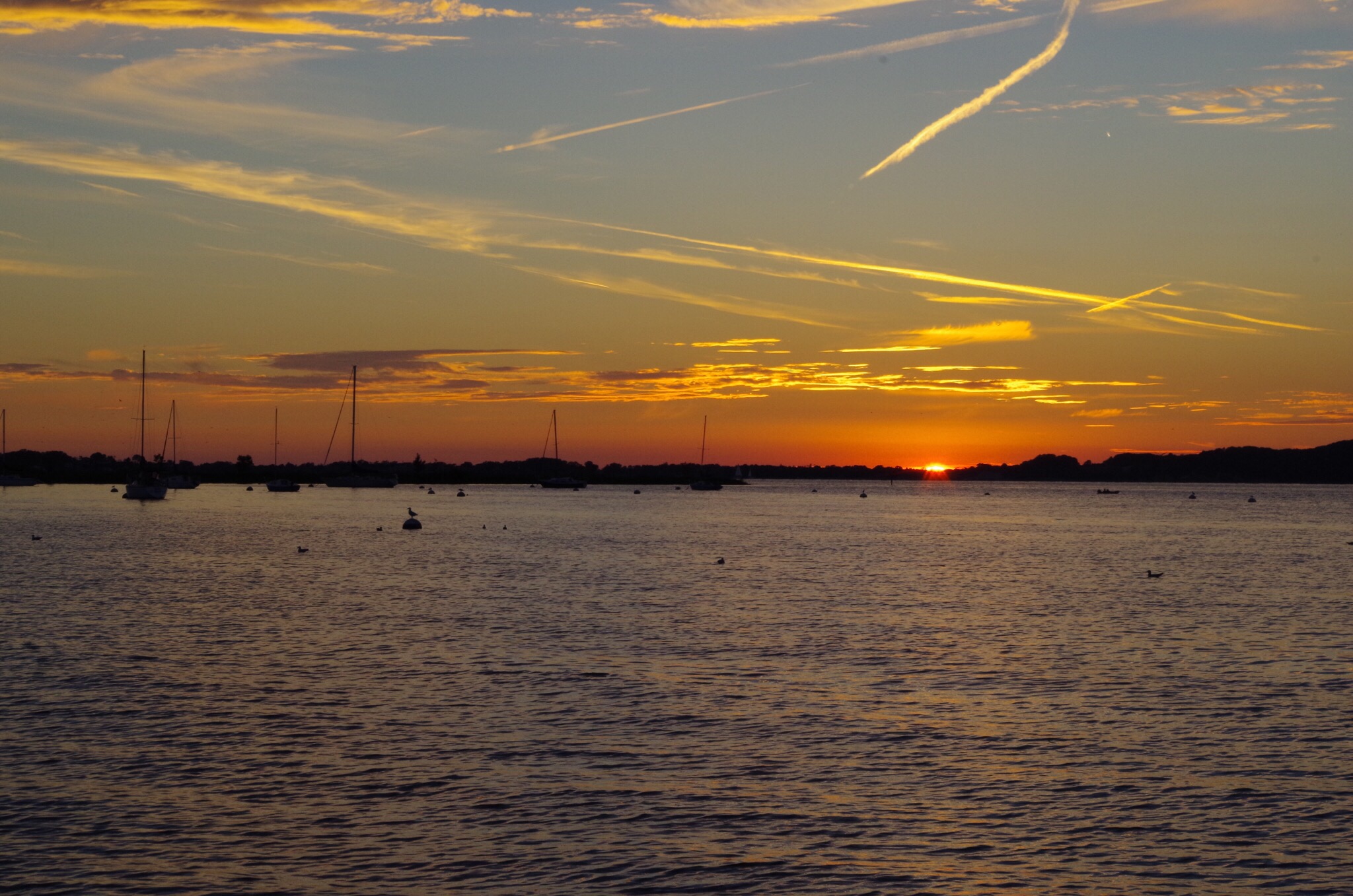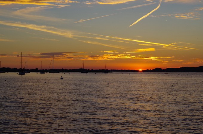 A pretty sunset with the stillness of sails anchored in the background
