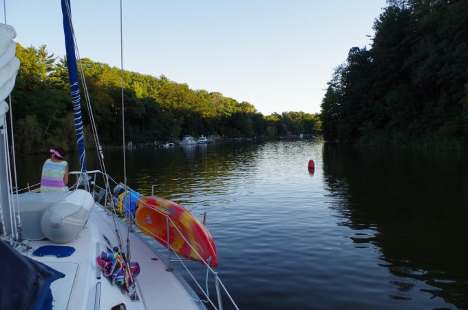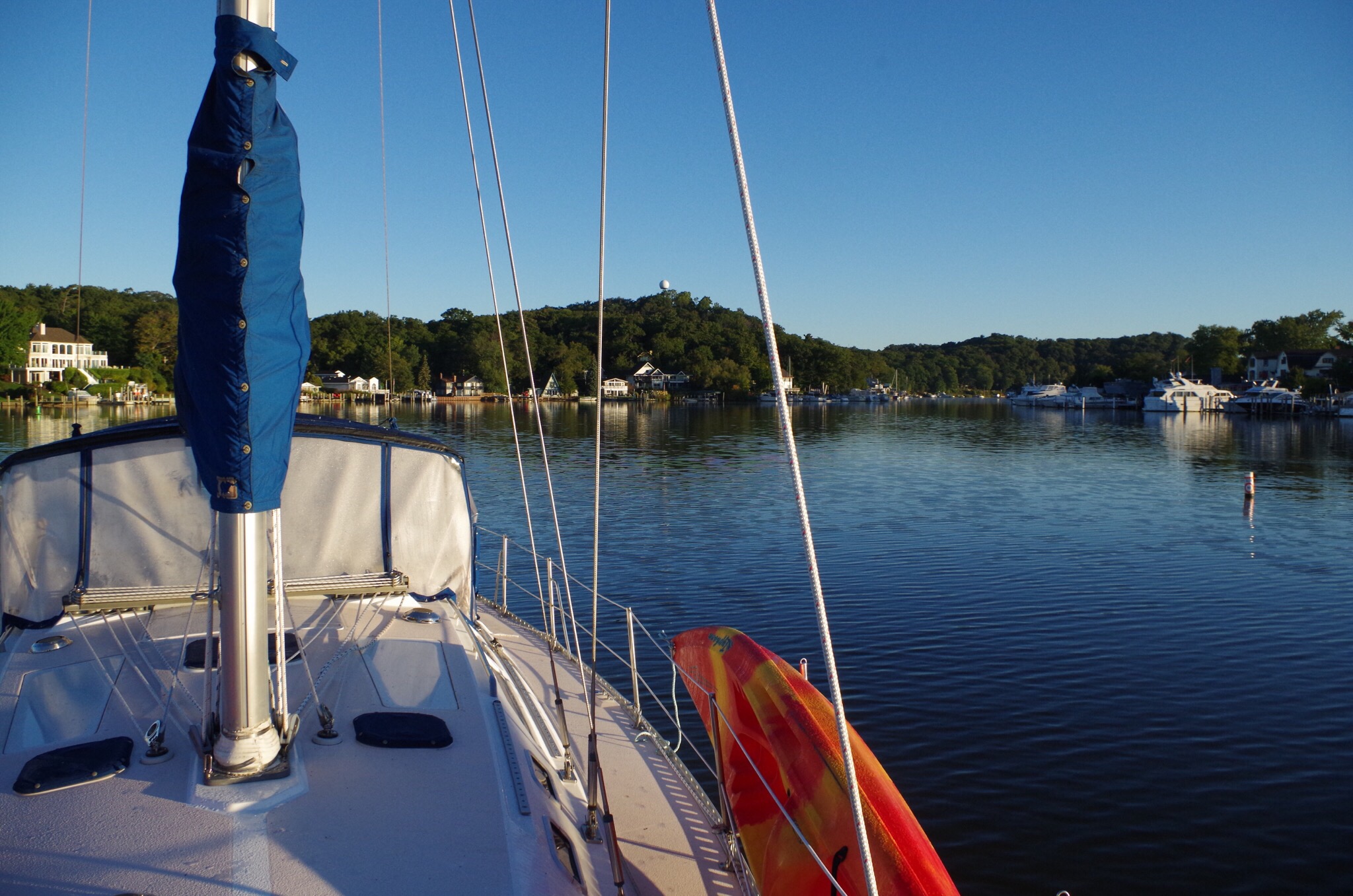 As I set on the bow of the boat over looking the hills on the Kalamazoo river to Saugatuck, I wonder how anyone could leave this area it is so beautiful…people were standing next to the sea wall and eating in restaurants waving hello to us as we passed though. We found our way to anchor in the middle of the lake next to a no wake bouy.