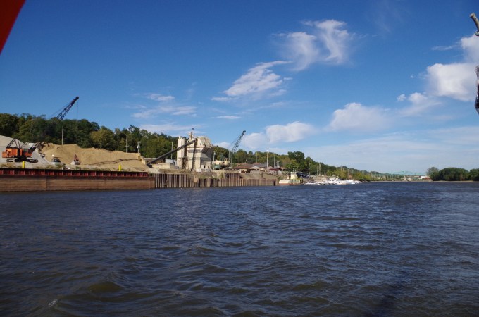 We are passing a marina & gravel and sand industry area in Peru Illinois