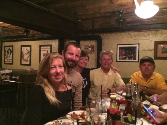 What an amazing night! As the wind blew across are bow in search for an anchorage spot, we noticed a marina. It’s Detwiller Municipal Marina. Unfortunately, we were told the depth was only 4feet. The manager of the marina suggested we go under the I74 bridge to the city docks and they would have free dockage for us for the night. It would be close to restaurants and shops. As we were pulling up to the wall to doc a man was standing there to help us. I couldn’t help but noticing the carp jumping out of the water. I looked over at the guy helping us when I realized it was Bill a gentleman who we had met a few days prior along with his wife Laura and their friends Greg & his wife Peggy. After we were safely docked up Bill was telling us they would be going out for dinner in a while and we are welcome to join them. Then we found out that another couple we met at the same time would be joining us too Chris & Stephanie. We started our evening out with Bill & Greg at the John S Rhodell Berwery and joined the rest of the group at Kelleher’s Irish Pub & Eatery. It was a very nice dinner and walk with new friends.