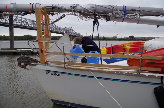 Not only was there no water but we had to walk over the Bob Mickel Bridge to get Diesel and groceries from Walmart. Actually it was a nice walk. Just a small breeze today.