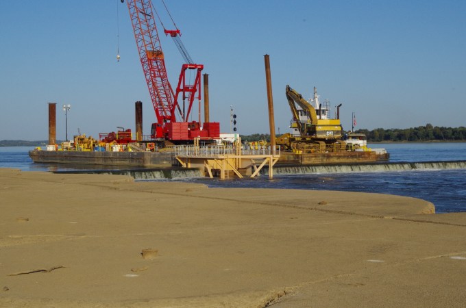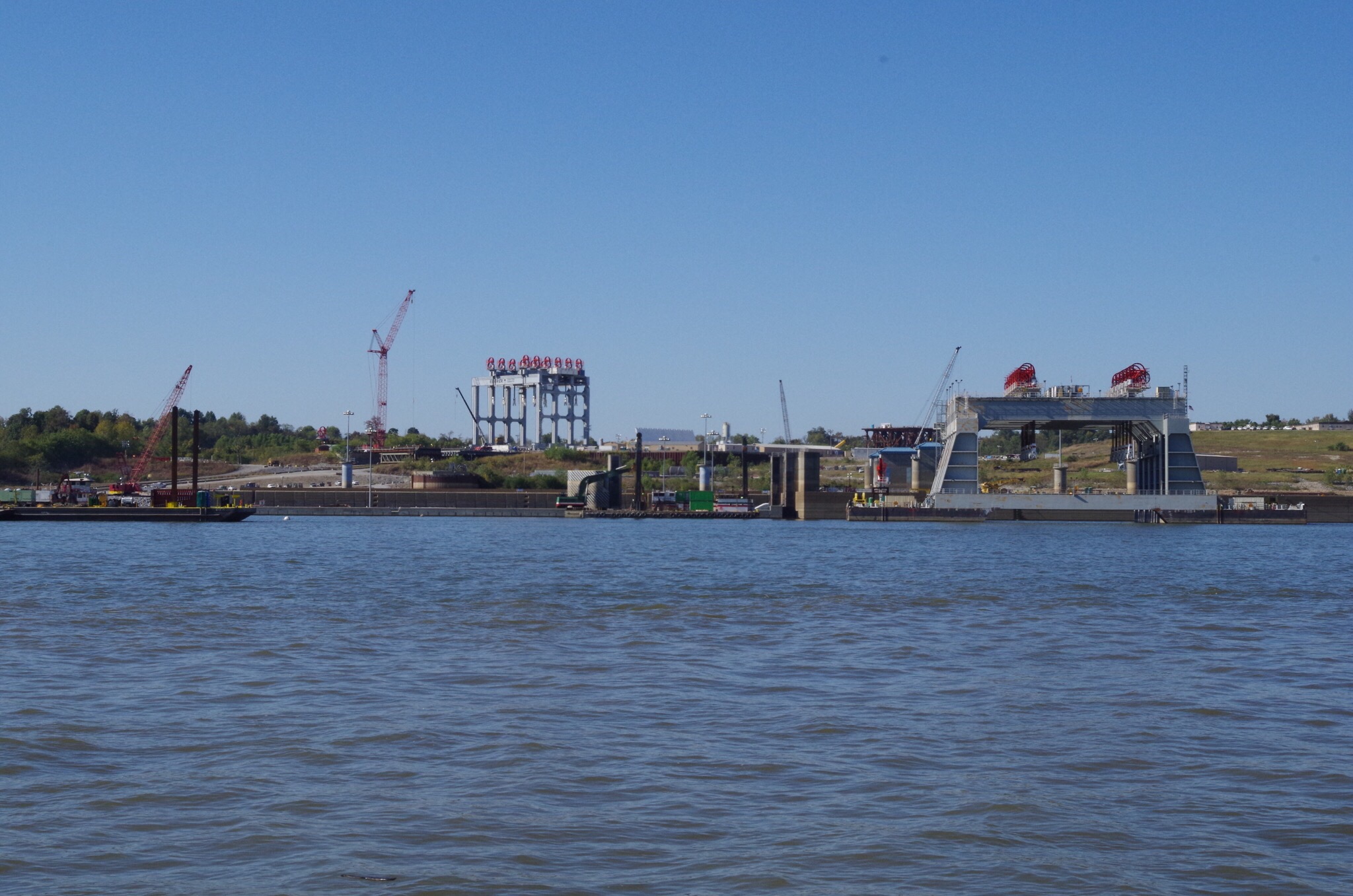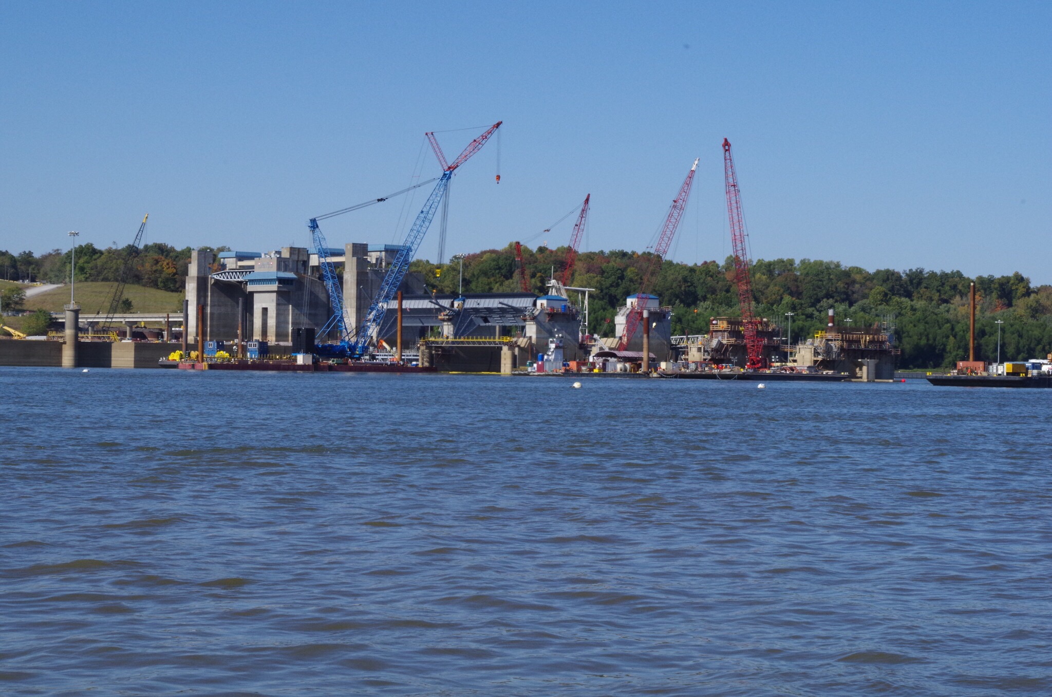 This is as you can guess another view of them building the lock. Finally they called us on the VHF and said they were ready to escort all of us through the safety zone. Why a safety zone you might ask? While building the new dam, which is in front of lock 53 you have to be escorted through. However, when we made it to the locks we waited another 3 hours. We had a total of a 5 1/2 hour wait.