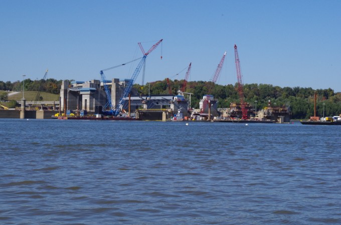 So we made it to lock 53 at 1:00 pm. We were told it would be around 1/2 hour. And to hang tight with the power boaters. They would get us through the locks together. Olmstead lock 53 & 52 are under construction they are building a new set of locks & 52 is 23.5 miles from 53 and they are going to combine the two locks in 2020 to create one.