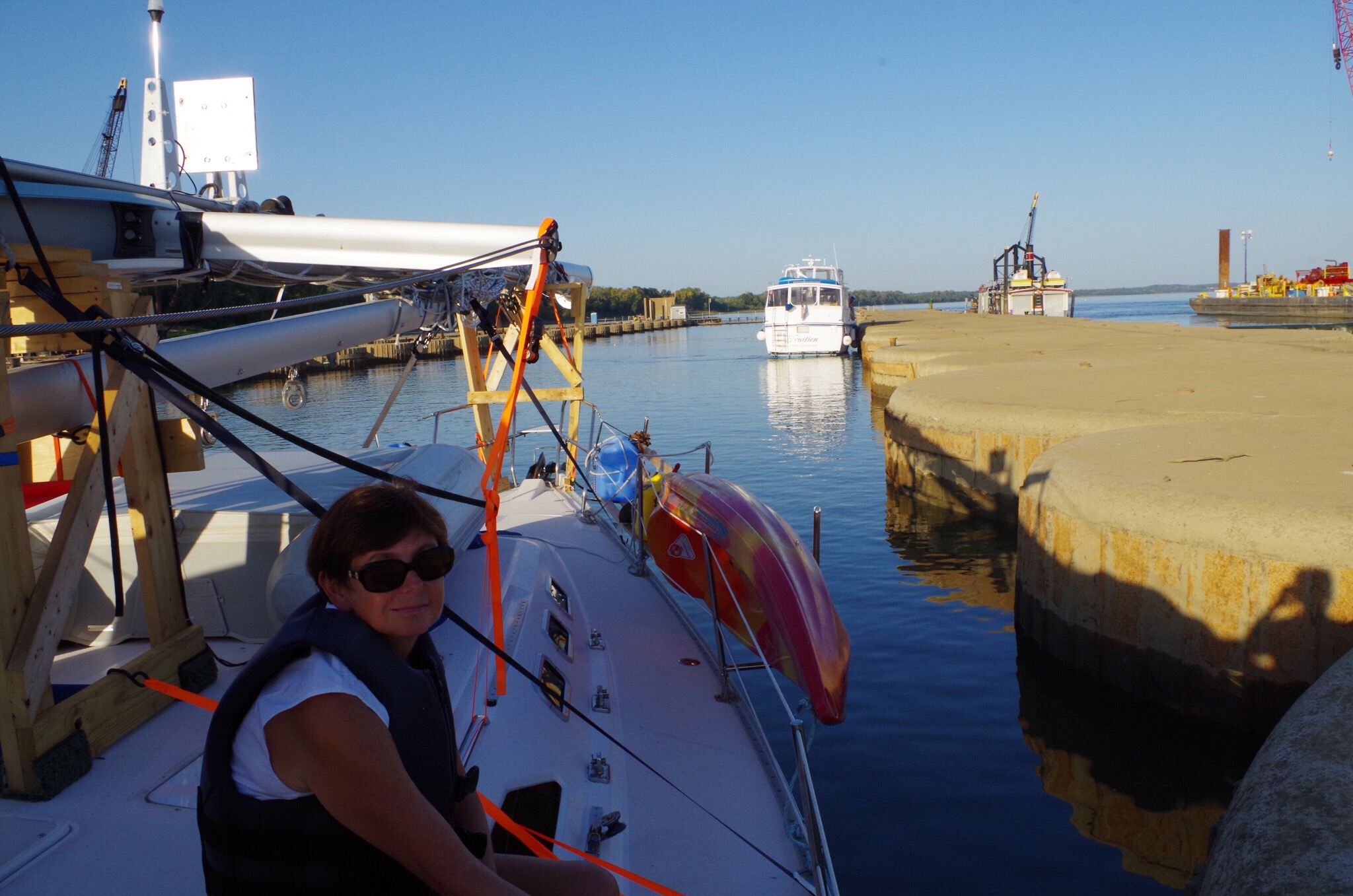 Finally, in the locks..Hoorayππ» although the skies look clear and bright sunset was about to settle in. Once out we must find a place to anchor. This was an unusual lock.. Round caissons rather than flat concrete.