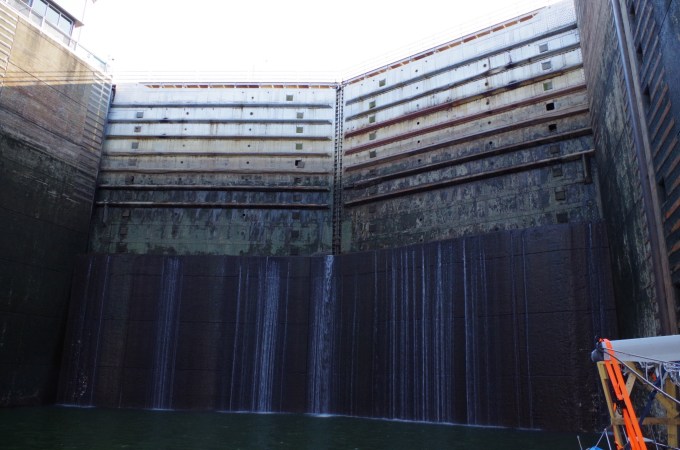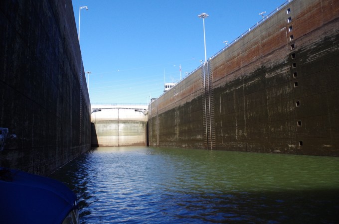 We were the only ones in the lock. As we approached the lock the Lock master said we had to wait for three higher priorities (than us). A few minutes later he hailed us on the VHF. The other vessels all okayed us to go in first before them. That was nice of them!
