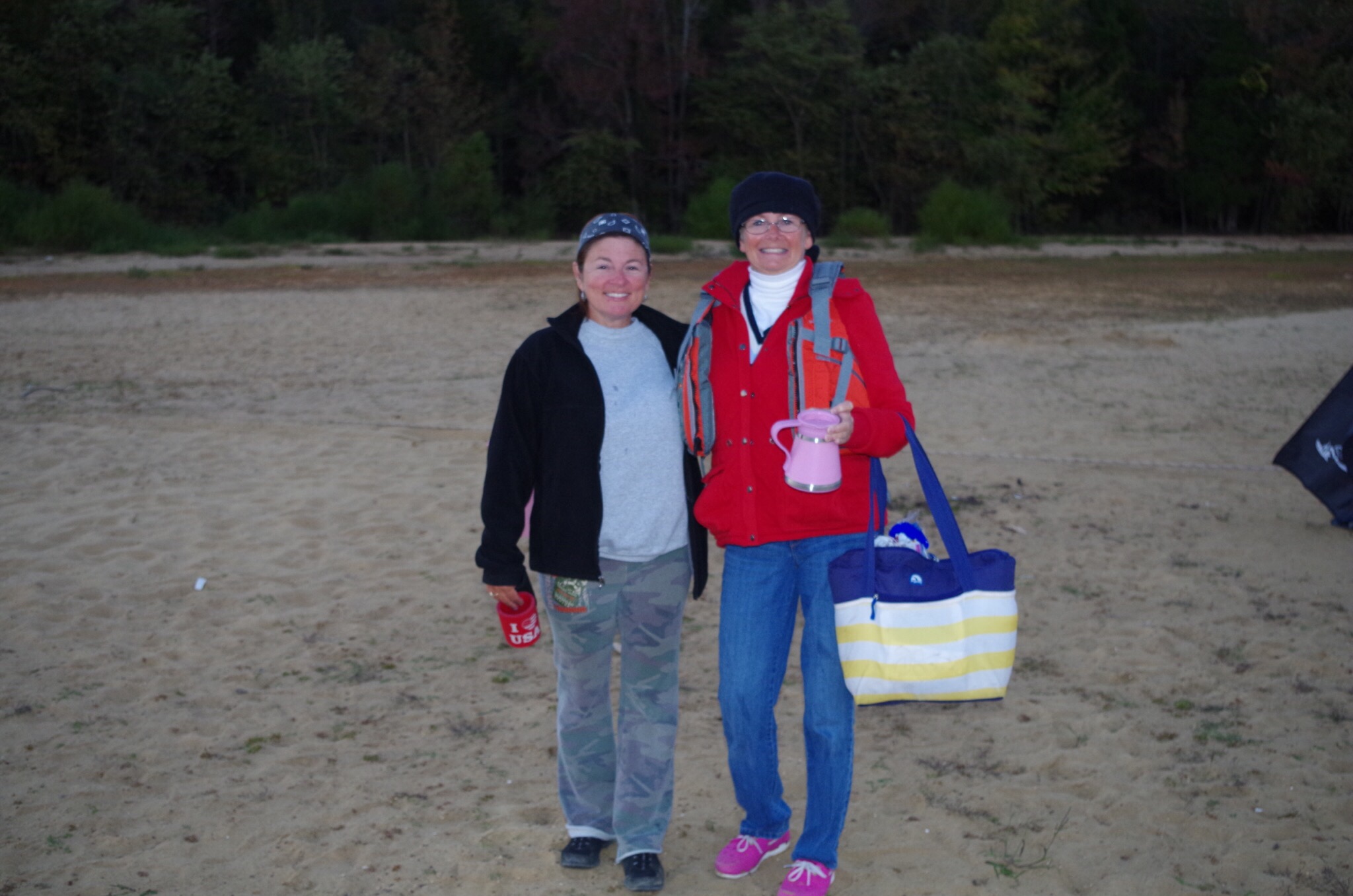 Roxy and Me (a new friend). You can tell the evening air was turning chillier. Notice the nice sandy beach.