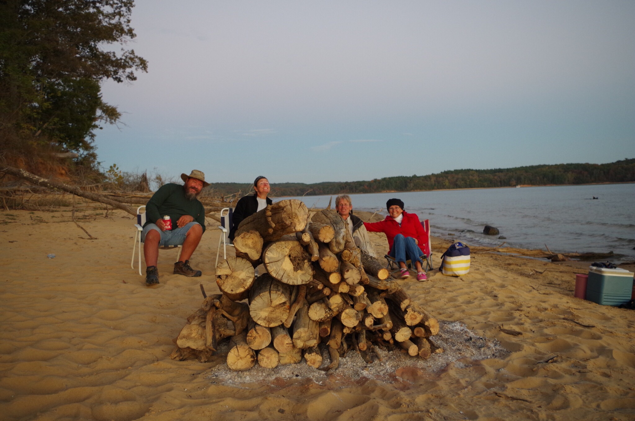 I enjoyed listening to them about their adventures in Kentucky Lake as much as they enjoyed listening to us. Roxy likes to sit out at night, have a bond fire and look a the stars. She even has an app that helps tell her what stars are what. They invited us over to join them. It was a great night. As we arrived over to their boat and we were greeted by Roxy. Then we joined Deon who was collecting the wood.