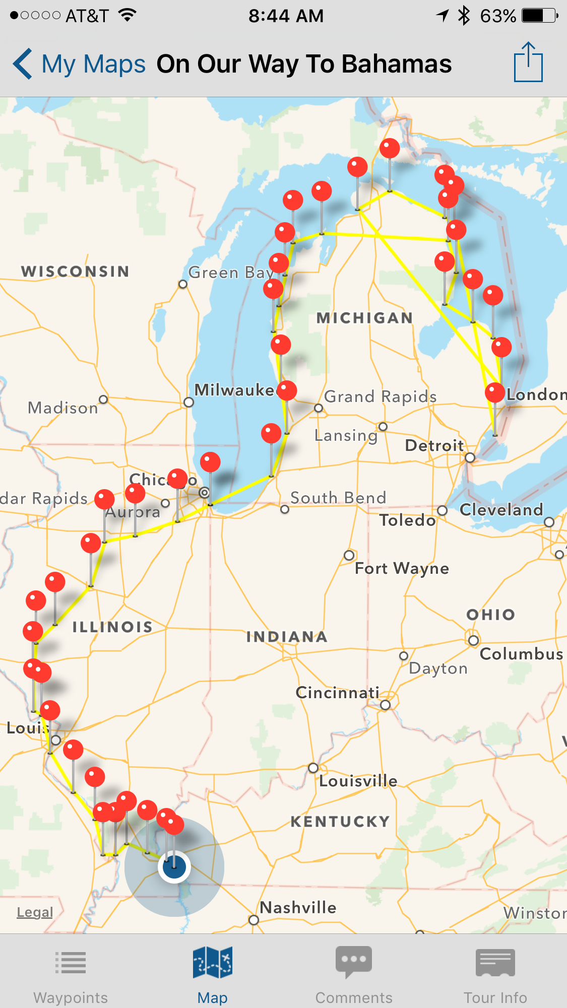 I thought it would be a good time to update our progress with everyone. The first map shows the start of our journey from home to the present day 53. Yes…I am loving it. Okay! we are. LOL