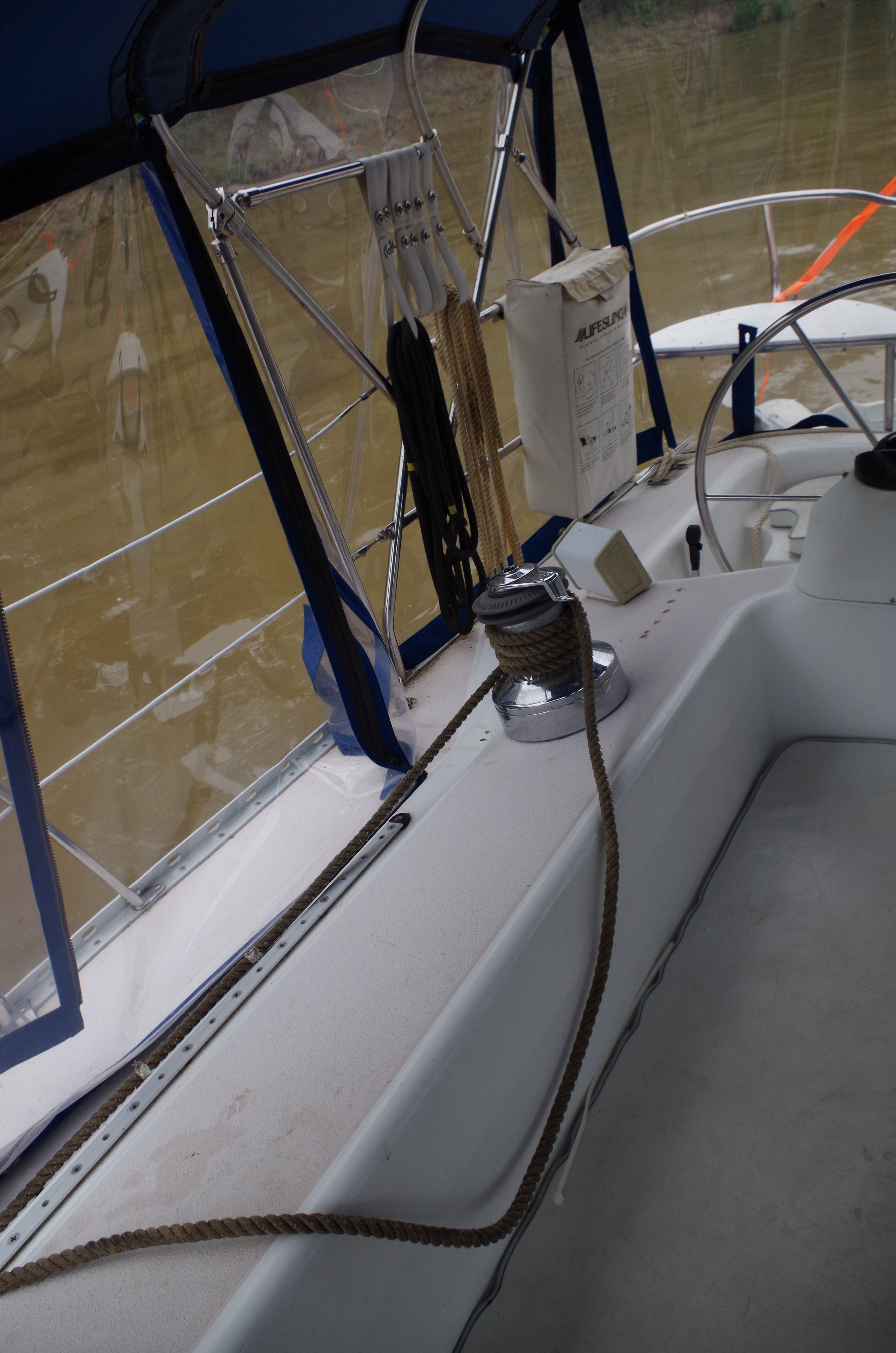 After we were loose (5 hours later) we pulled way. Bryce needed to get his frustration out so he swabbed the deck. I took the helm and headed to our new anchorage 20 miles south for the night. Yes, we had a spare anchor; a “Danforth Super Hooker” and a rear anchor “Delta”. We will have to buy a new one. Lets pray we don’t loose another one to soon.