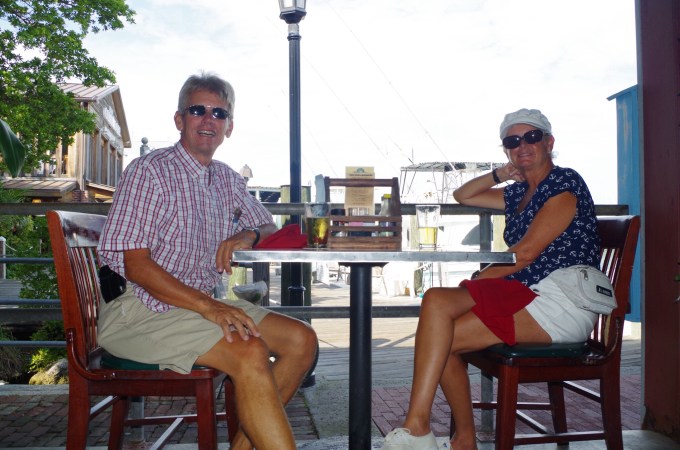 The story starts after our arrival by bus to Key West. We started our journey for the day in a local restaurant on the board walk in the marina for an appetizer & beer. Coconut shrimp π€ and a Bud Lightπ». It was very delicious. Our table looked out to the marina.