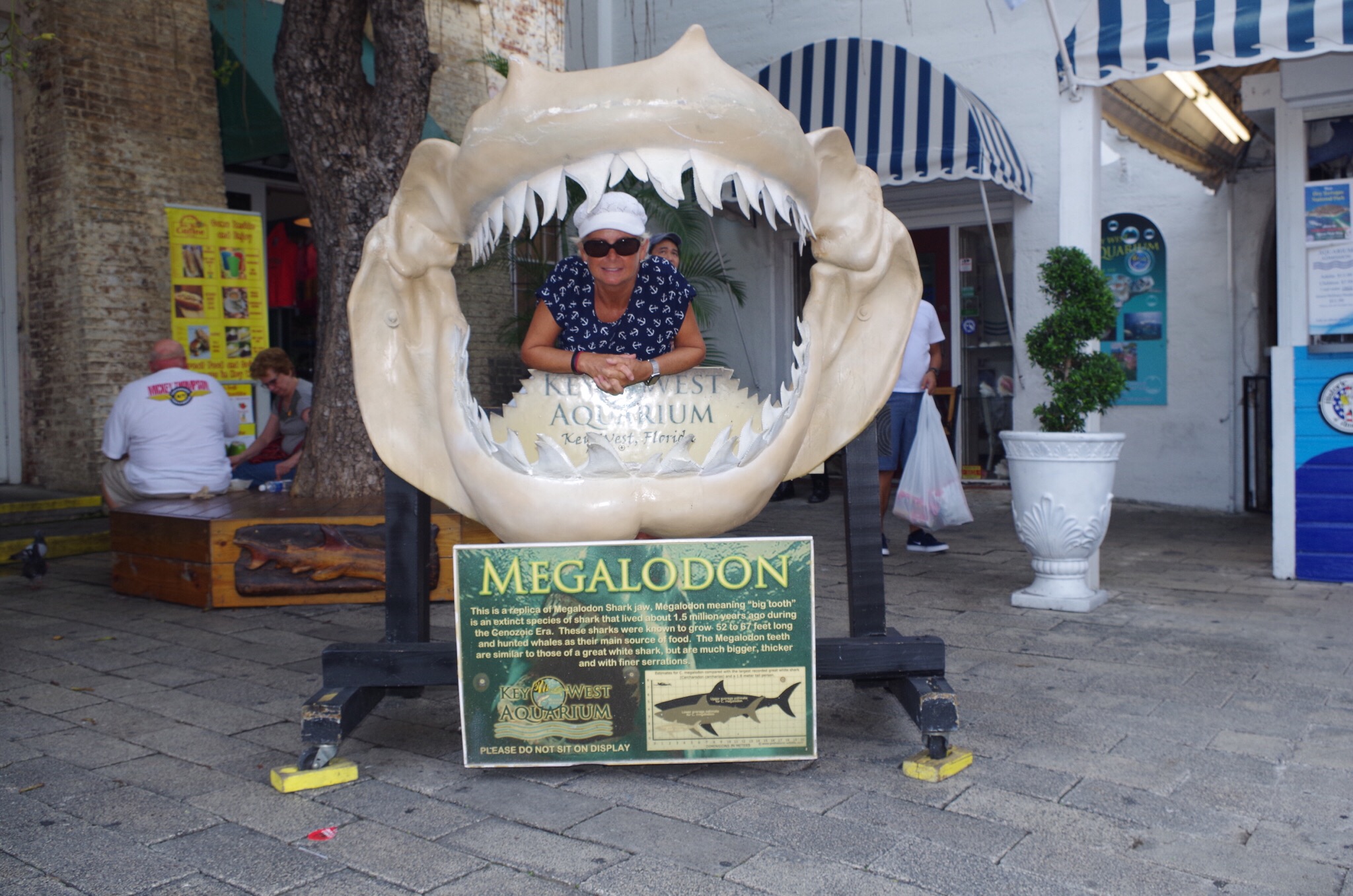 I think that this is as close as I want to get to a shark…. This is a replica of the Megalodon shark; meaning Big Tooth. As the plaque says this is an extinct species of sharks that lived about 1.5 million years ago during the Cenozoic Era. They were known to grow 62 to 67 feet long and hunted whale as their main source of food. The Megalodon teeth are similar to the Great White Shark however, they were much bigger, thicker along with finer serration.