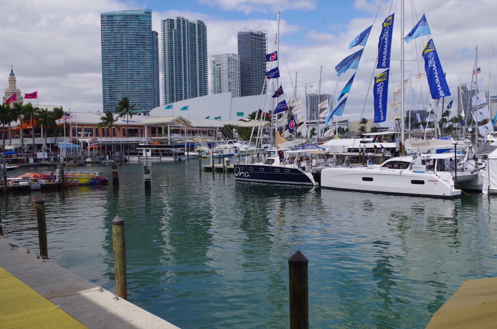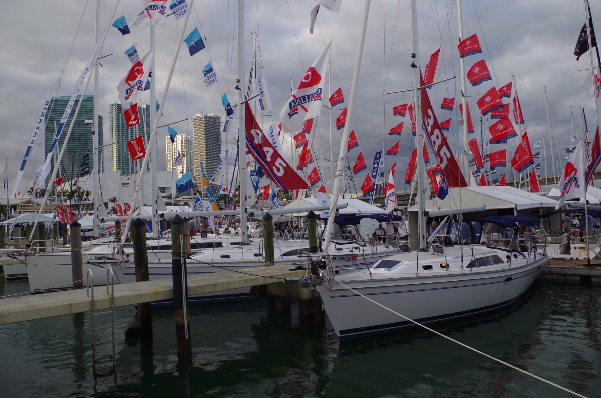 One of the over views shots of Miami sailboat show. They separated the power boat show from the sailboat area. I think that was a bad idea. If you wanted to see the power boats you had to shuttle over to another Island. It just took too long and cut down on your time for viewing boats.