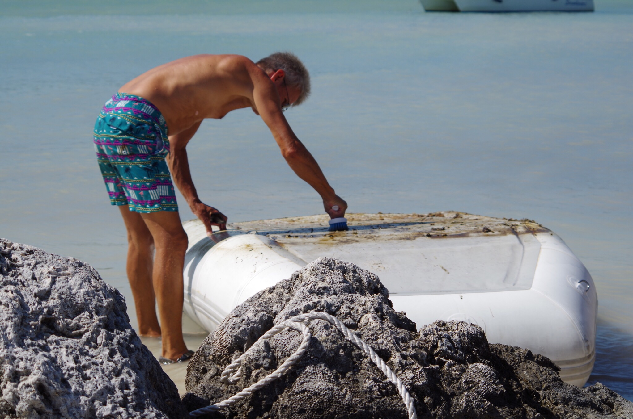 The dingy had to have the barnacles and scum scrapped off.