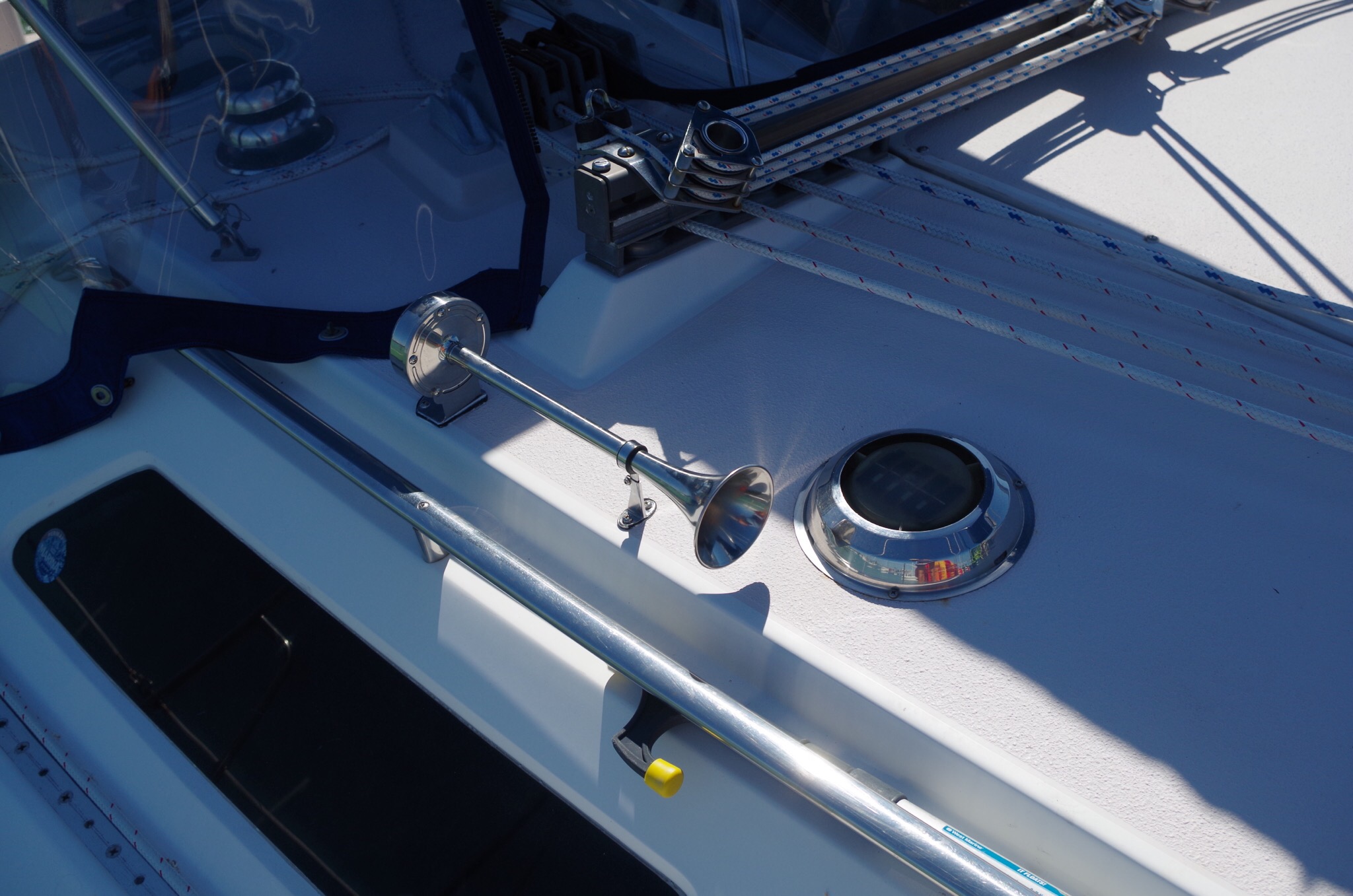 I brought Bryce a horn last year for his birthday. He finally installed it. One of the few sailboats with an electric horn.