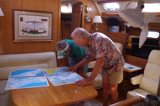 We decided to take a stroll through Bimini but before we left Bryce met the owner of a Catalina 470 Jim Seemann. What a delightful person he is. Jim invited us in to see the inside if his boat (PipeDream). It is one of the boats that we thought was a possibility to up grade to. Bryce and Jim talked about our route through the Bahamas. We decided to head to town and look for a loaf of bread and a Bahamian phone. Jim also needed to pick up lunch meat so we all headed to town.