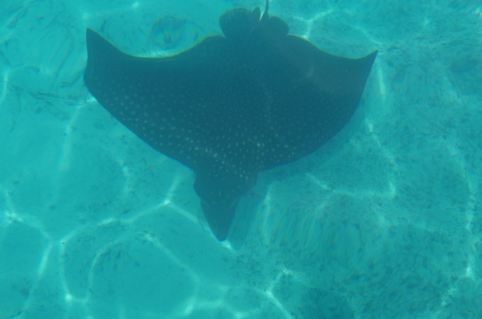 After dinner we headed back to the boat to get some beer. when we noticed this stingray and Shark swimming. Come to find out we heard they feed the sharks to keep them nearby so when visitor come and want to shark dive they will see them.
