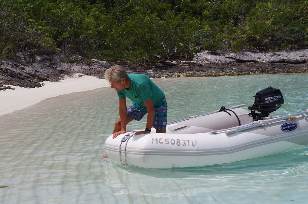 Bryce landing our dinghy on shore. He is doing a great job. One of the beaches we were at; Jaws beach, the tide came in while we were talking to a boater and the dinghy started to floated away.