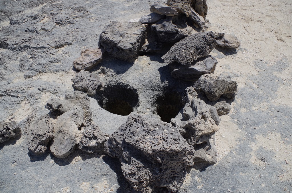 This one had two holes a lot of air pressure coming up.  One of the blow holes was so powerful, it sounded like a jet taking off.  It started us at first as we approached it.