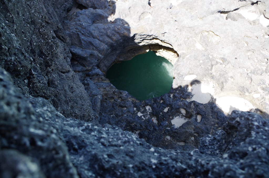 Bryce stood on the edge of the cliff to get this photo of the hole below into the cave feeding the blow holes. See when the air and waves are high the pressure builds as the water covers this big hole and shoots water up like a geyser out of the Blow holes.  There are several on top of the hill.