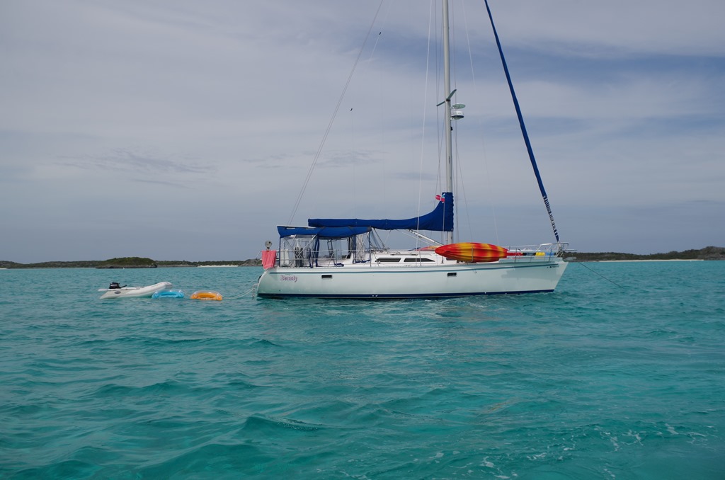 Here you see Beauty at anchor in the Park.  We are surprised by the huge number of boats in the Bahamas.  Each anchorage has 5-10 boats over night.  There were 7 super yachts anchored further out.  We did not feel so bad bringing a jetski because the super yachts were often carrying 4 of them!!  There were quite a few jet skis in this area.