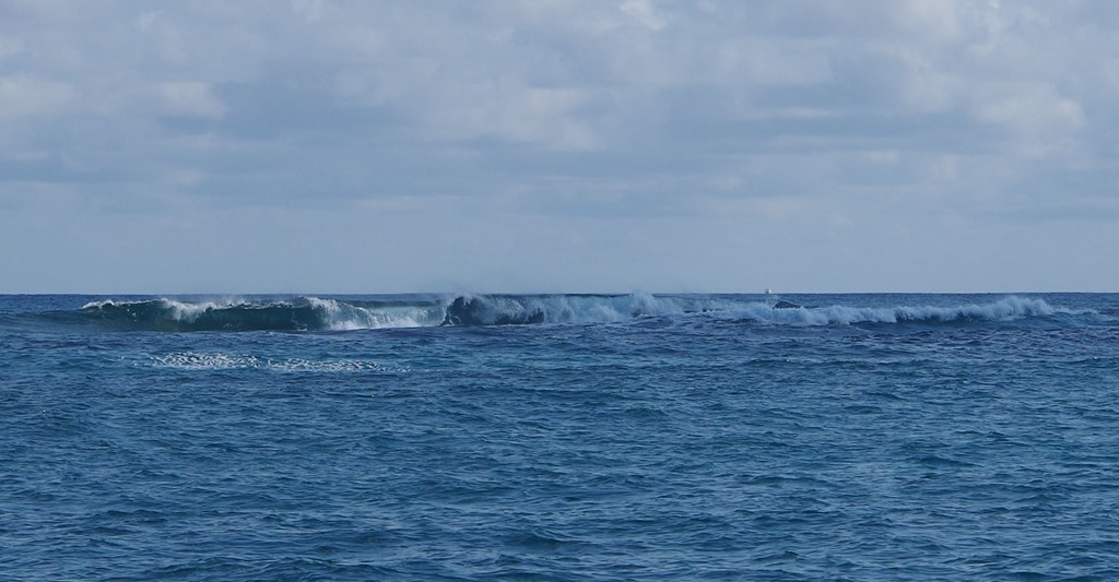 Bryce had to keep us on the sailing line using the GPS. There was no room for any errors on this route. Rollers were breaking on each side of us. Water depth was not visually obvious. However, there was a clear route through the breakers.