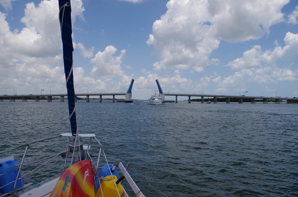 This bridge opens on demand while we were waiting we were passed by Gloria another huge boat.