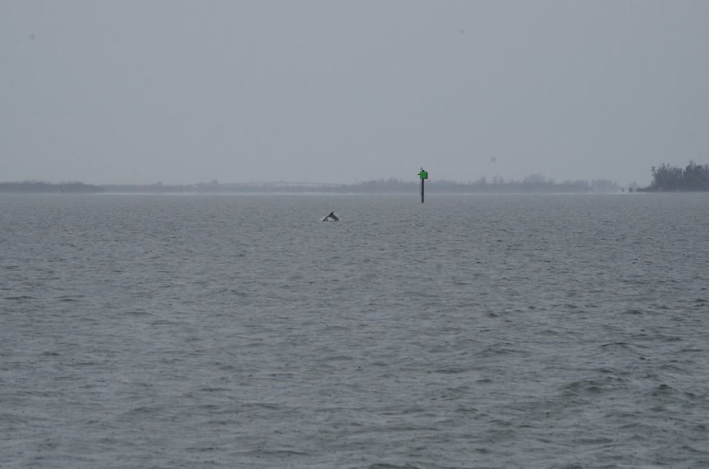There is nothing like motor-sailing in the rain. I think we have been blessed with rain here for some reason. The rain today seems so peaceful. Boats are sailing in the ICW intercostal waterway. Dauphins are dancing; birds are flying. What a great day and feeling. It appears we see more sea world in the ICW then in the Atlantic Ocean. I see the big difference is the water clarity. Why does the ICW look like dirty water?