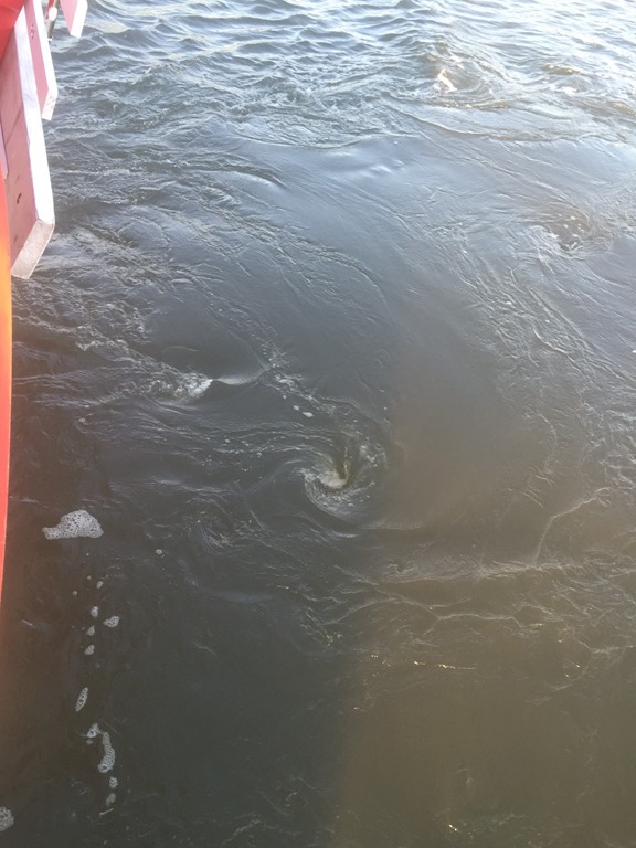 We both noticed the current rotating around the boat. Darn those whirlpools keep following us!! LOL