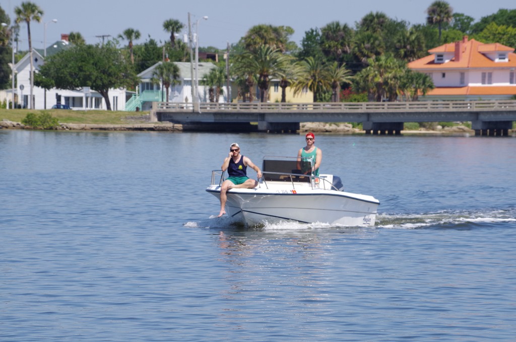 Wahoo! Today took us a lot longer then we anticipated on so we found a nice place to anchor 2 miles from St. Augustine. We decided the evening was cooling down so we went down to make coffee for Bryce tea for me. While all was cooking I went back up to the bow Bryce started to get our chairs ready when all heck broke loose..