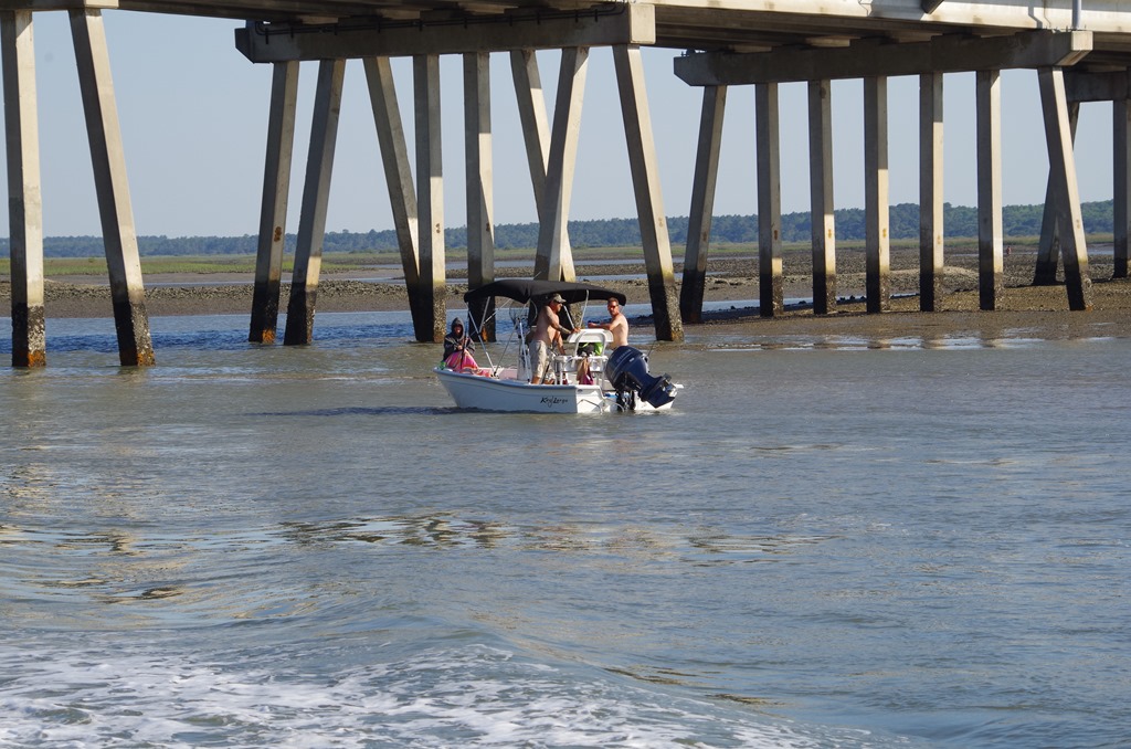 As we travel through the narrow ICW in low tide we have to keep our head on straight. It is total focus time in this area. I am afraid to crack a smile for fear the water might disappear. Can you believe the water level is so low that when the tide rises all this will be covered in water.