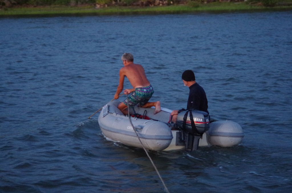 Crap… Bryce said the anchor line wrapped around the keel of the boat. The wind was pushing us in one direction and the current in another. We had no choice, we had to figure out away to unleash its grasp. Bryce took out the jet-ski and tried to pull the boat. Nothing happened; so he set the rear anchor to unload the main anchor. Darn we are going to run out of daylight soon.