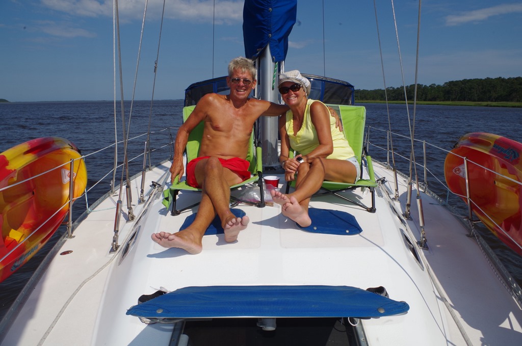 After anchoring for the night, we sat down for a well deserved cocktail. We anchored just down stream from Georgetown. It’s awesome to watch all the activity around when anchored.