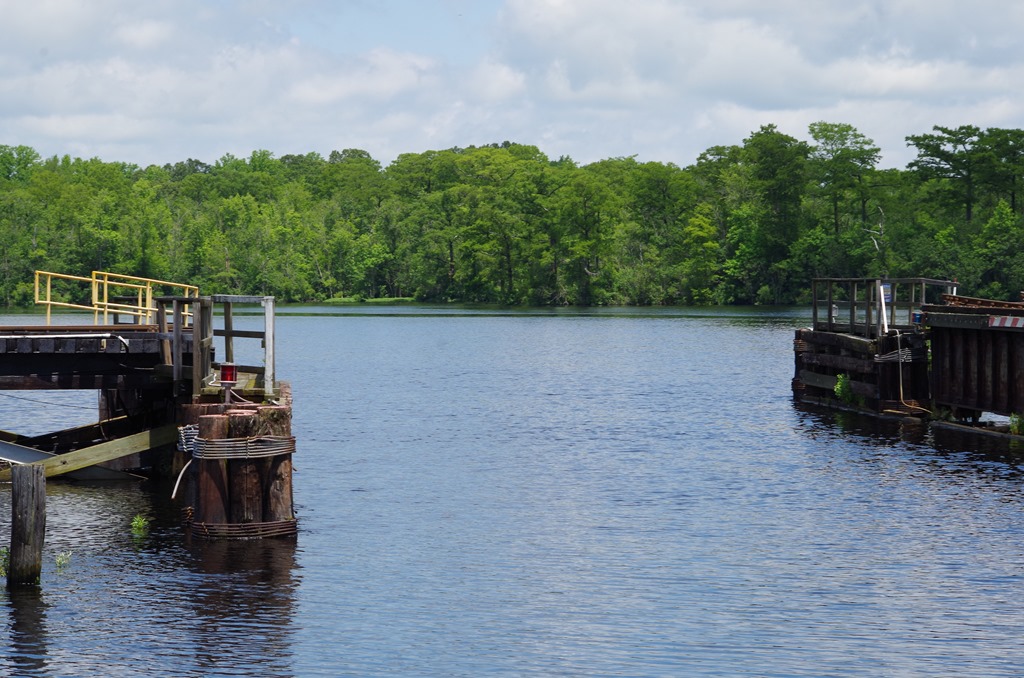 After Al got us through the lock, he had to get into his vehicle and drive down the road to the South Mills bridge to open it and let us through.