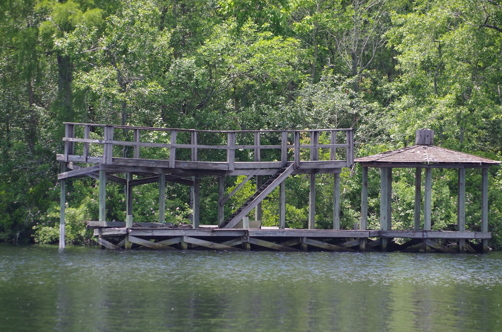 Here is a double decker deck with nothing around it. I wonder who built it? I think it would be neat to have some furniture under the roof.