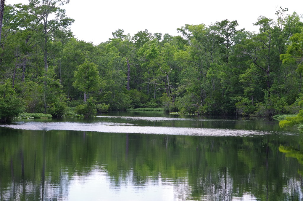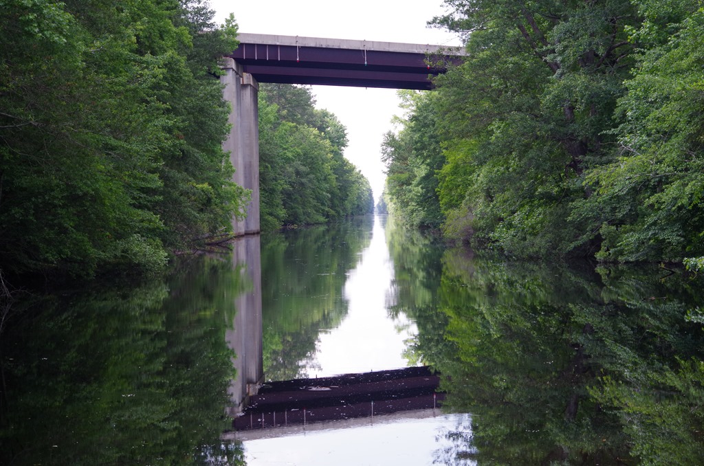 In this photo you can see the high water water levels from the two tropical storm that dumped a bit of rain in this area. Although, it turned out the Dismal swamp was at normal level.