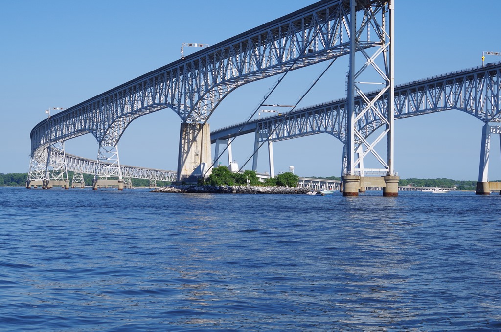 The sun cast it glow on the Port side of this bridge as we passed under around 6:30 a.m. This is the bridge just north of Annapolis.