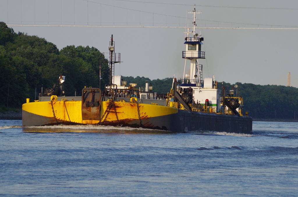 We passed another tow under the bridge. Boy do they look like freighters from a distance. I think this was a freighter converted to a barge. Bryce calls them “Freighter Barges”.