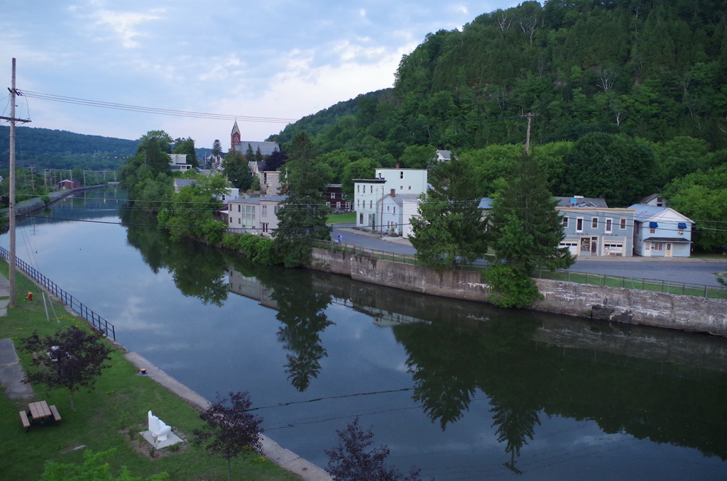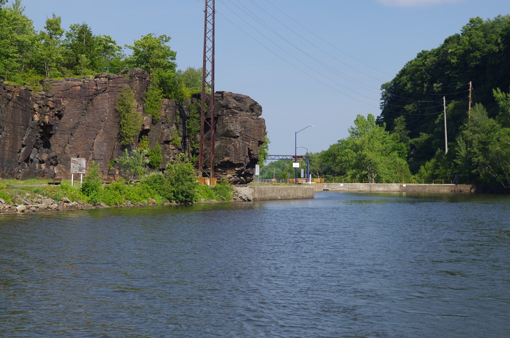 The following morning, after Bryce finished up as always with work, we headed up to Lock E-16 (Johnsville lock). It was only 6.9 miles away. We followed the canal up to E-17; the Little Falls area. I wanted to stay there over night providing they have any room available at the City docks. You are not allowed to tie off at lock E-17. This area is so hilly with steep rocky cliffs. Moss Island is a popular area for climbers. Another neat piece of history is Redco Food INC is a private company that makes tea here.
