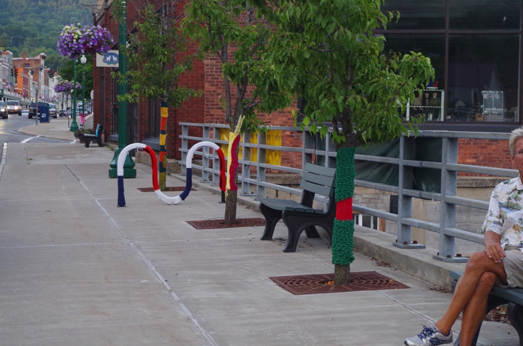 I thought this was neat. Here was crochet and net things on most of the chairs, trees, bike racks, etc.