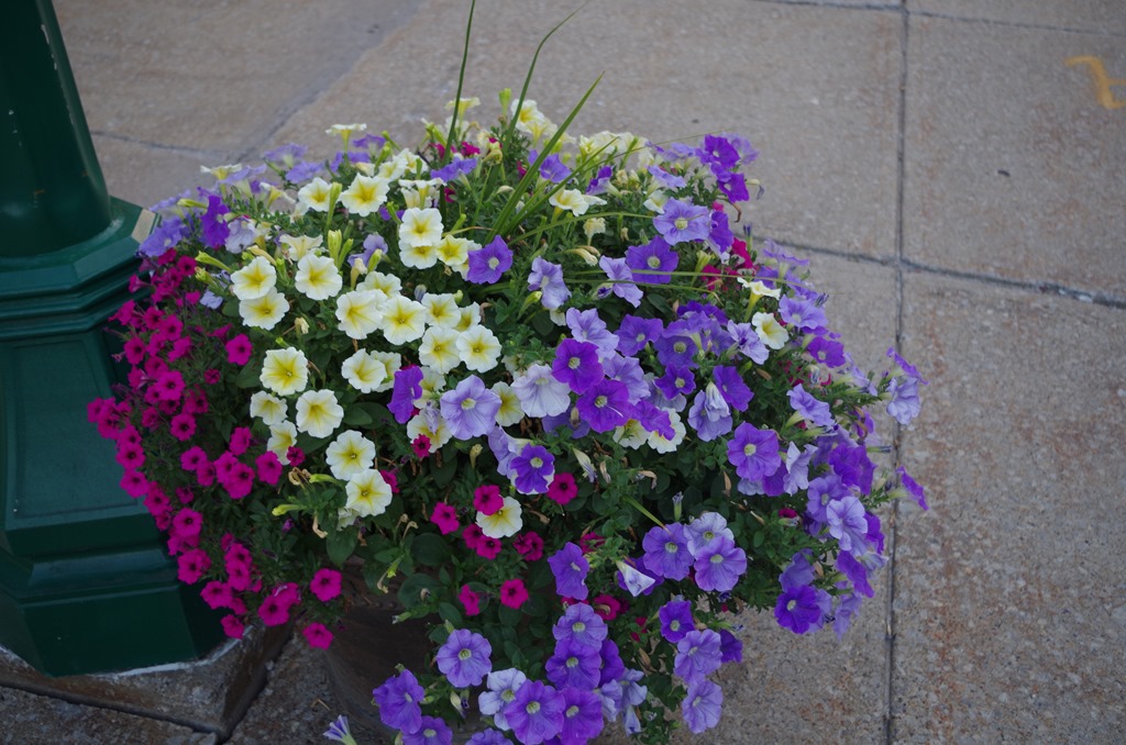 I think they did this on purpose. Every pot of flowers had the same flowers in the same arrangement as the next. Boy, they sure had pretty flowers.
