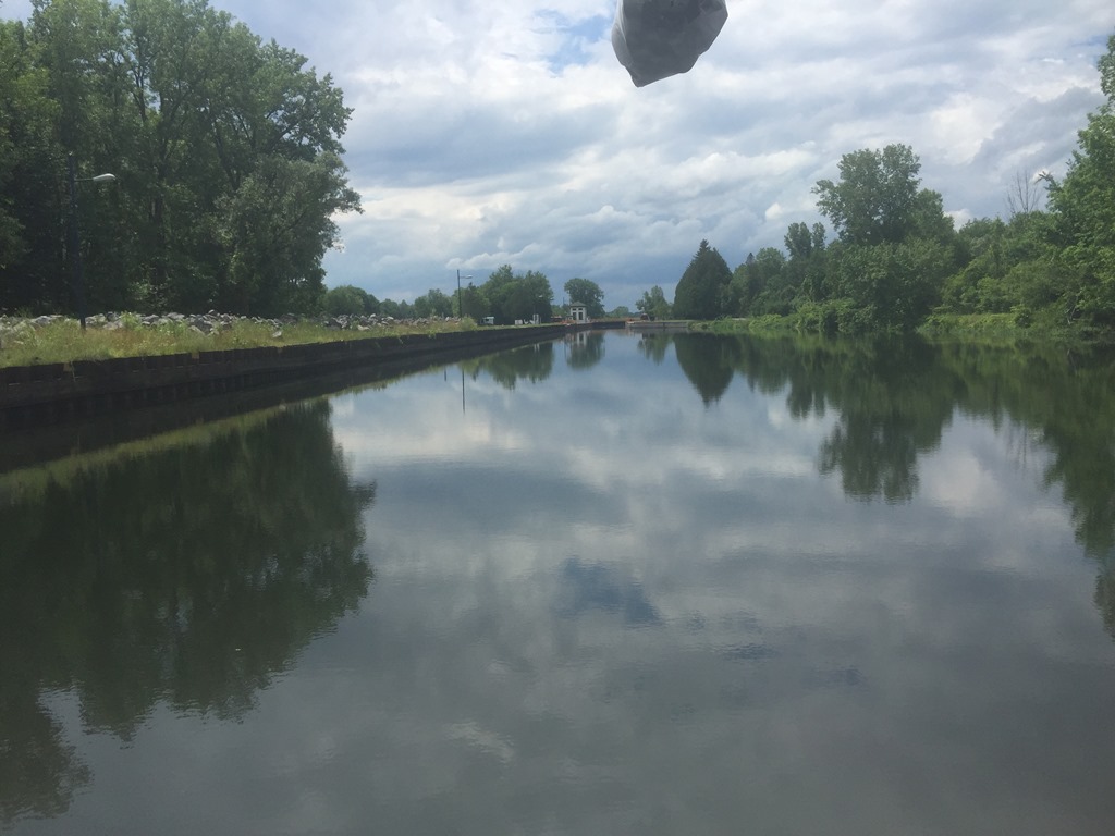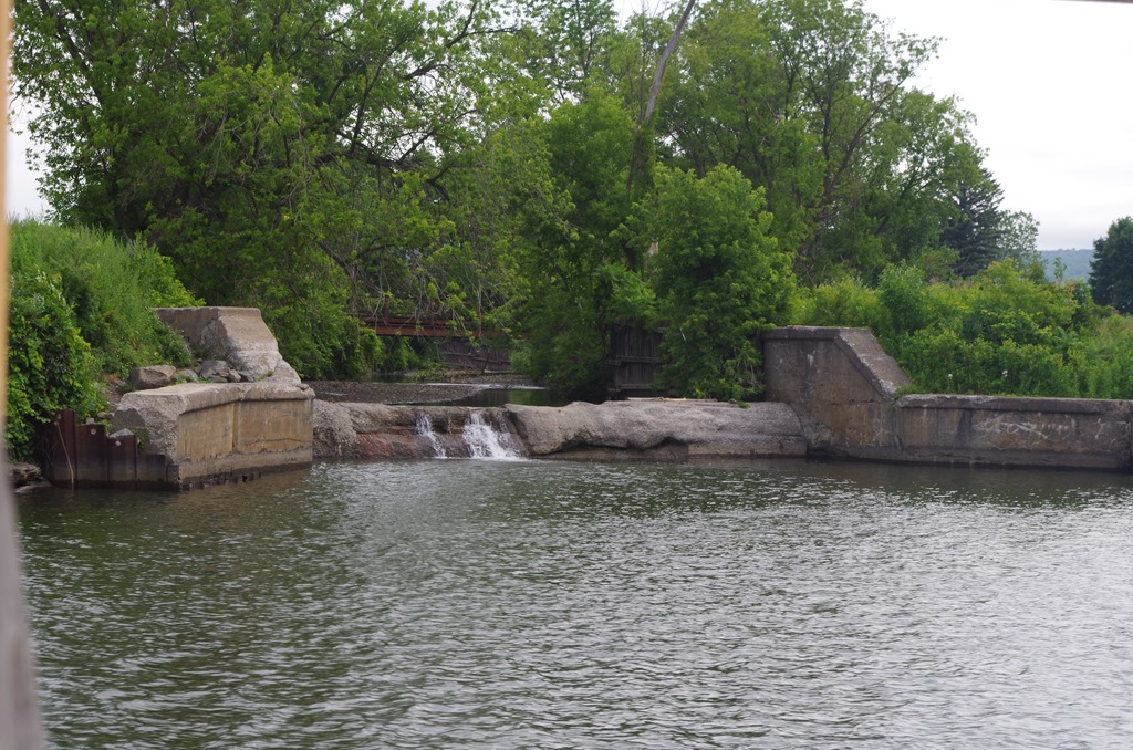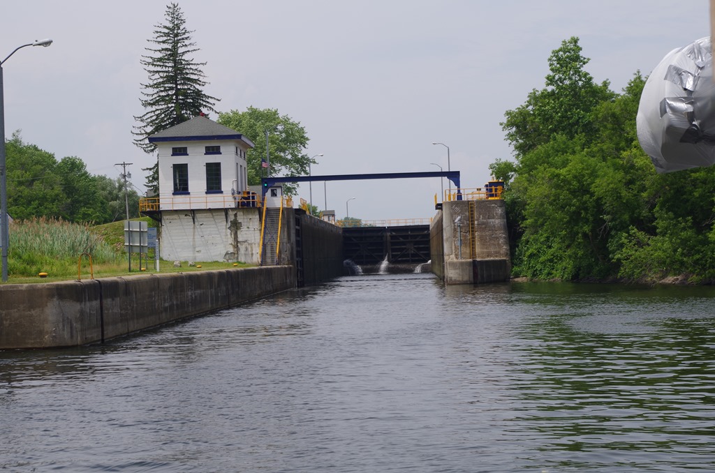 Because of my inabilities to swim well, I always wear my life jacket. It is under my rain coat. In the Mississippi, life jackets are mandatory in the locks. Not in the Erie. We pulled up next to the wall right lock 19 (Frankfort). It was nearing 5:30 and we didn’t have enough time to get to lock 20 (Whitesboro).