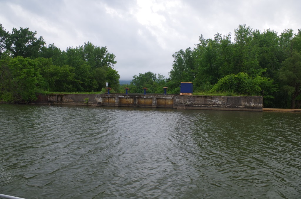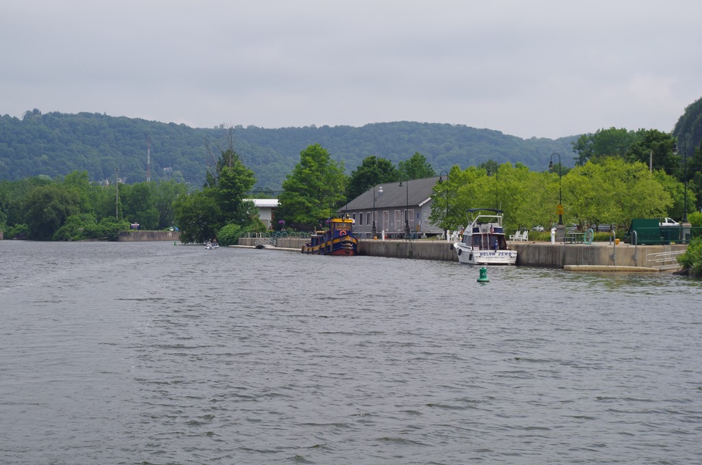 Here is an interesting fact. Lock 21 (New London) is the start of the locks going down instead of up. We must be coming to the other side of the mountains. This didn’t even look like a lock to me. But after we pulled closer, I could see the doors of the lock.
