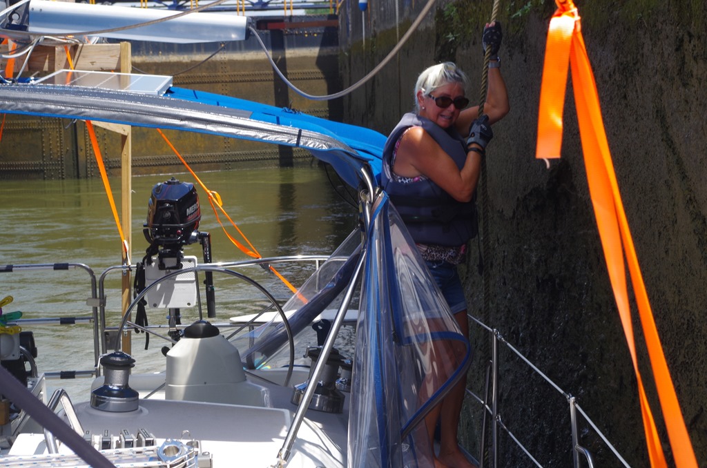 To our surprise when the door opened I noticed a lot of paddling going on. I started to laugh. Of all our locking we have never seen kayakers come out of the locks.
