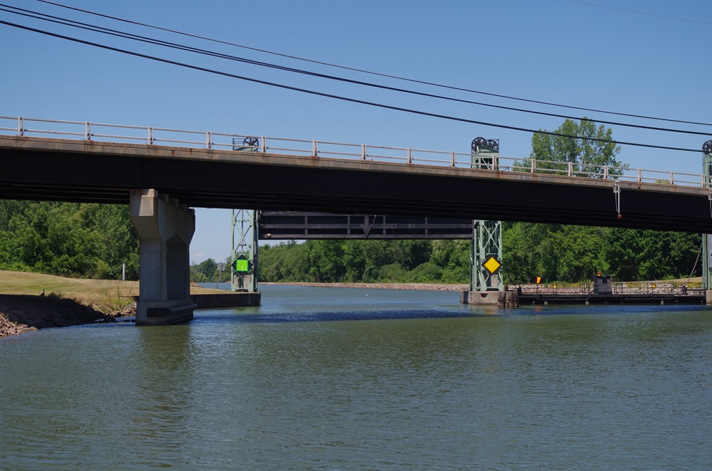 As we left Holly headed to Albion, we passed a few more gates and bridges along the canal. Just a few weeks back, this gate was lowered because the Erie Canal sprung a leak!!! Perhaps they brought in the little Dutch boy to plug the hole with his finger. All is good now!! Seriously, they needed to do maintenance to fix a small leak. They expected to take a month, but got it fixed in a week. The small leak was detected by one of the hundreds of canal watchers who inspect the complete canal on a regular basis.